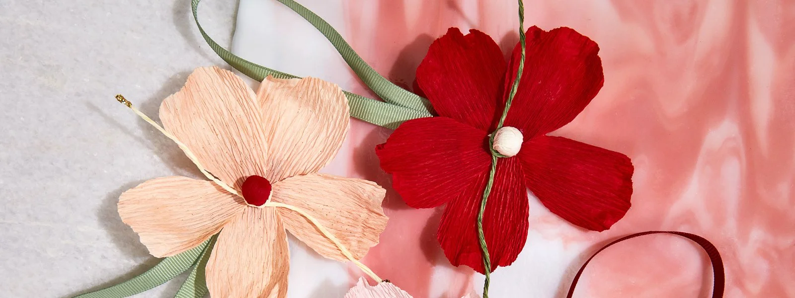 Vi har designet fire simple juleblomster i FSC-certificeret crepepapir, inspireret af farver fra Magasins julepalette.