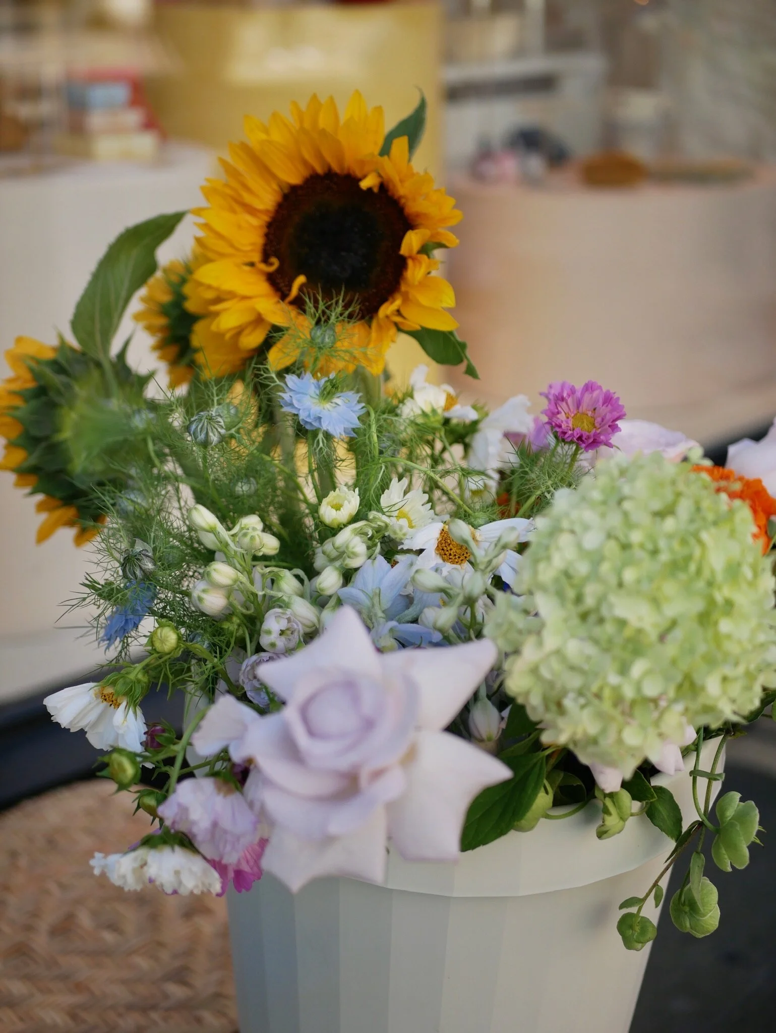 Blomster og farvemekka for konceptbutik