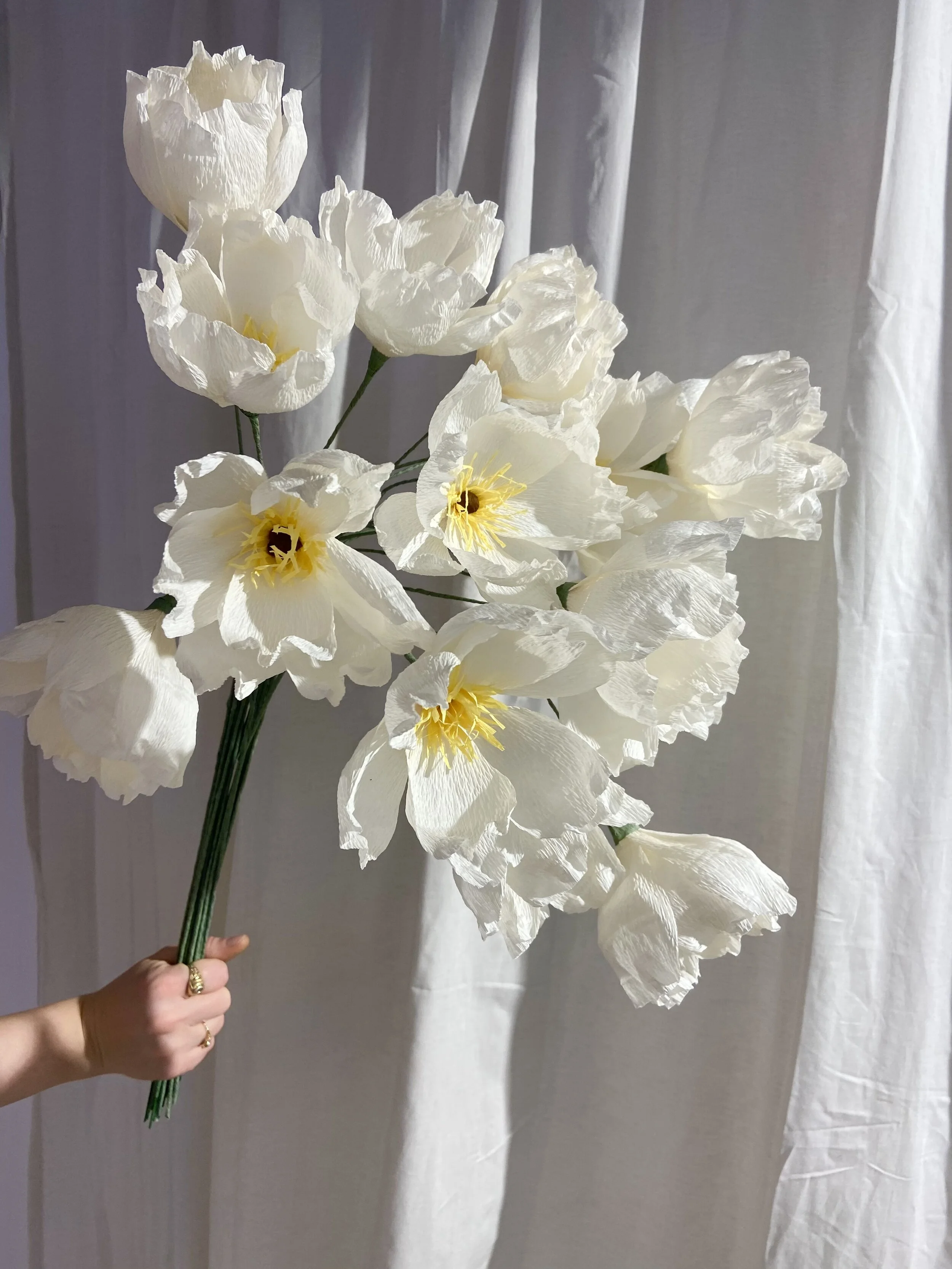 Få lavet din brudebuket af håndlavede papirblomster så den kan holde forevigt.