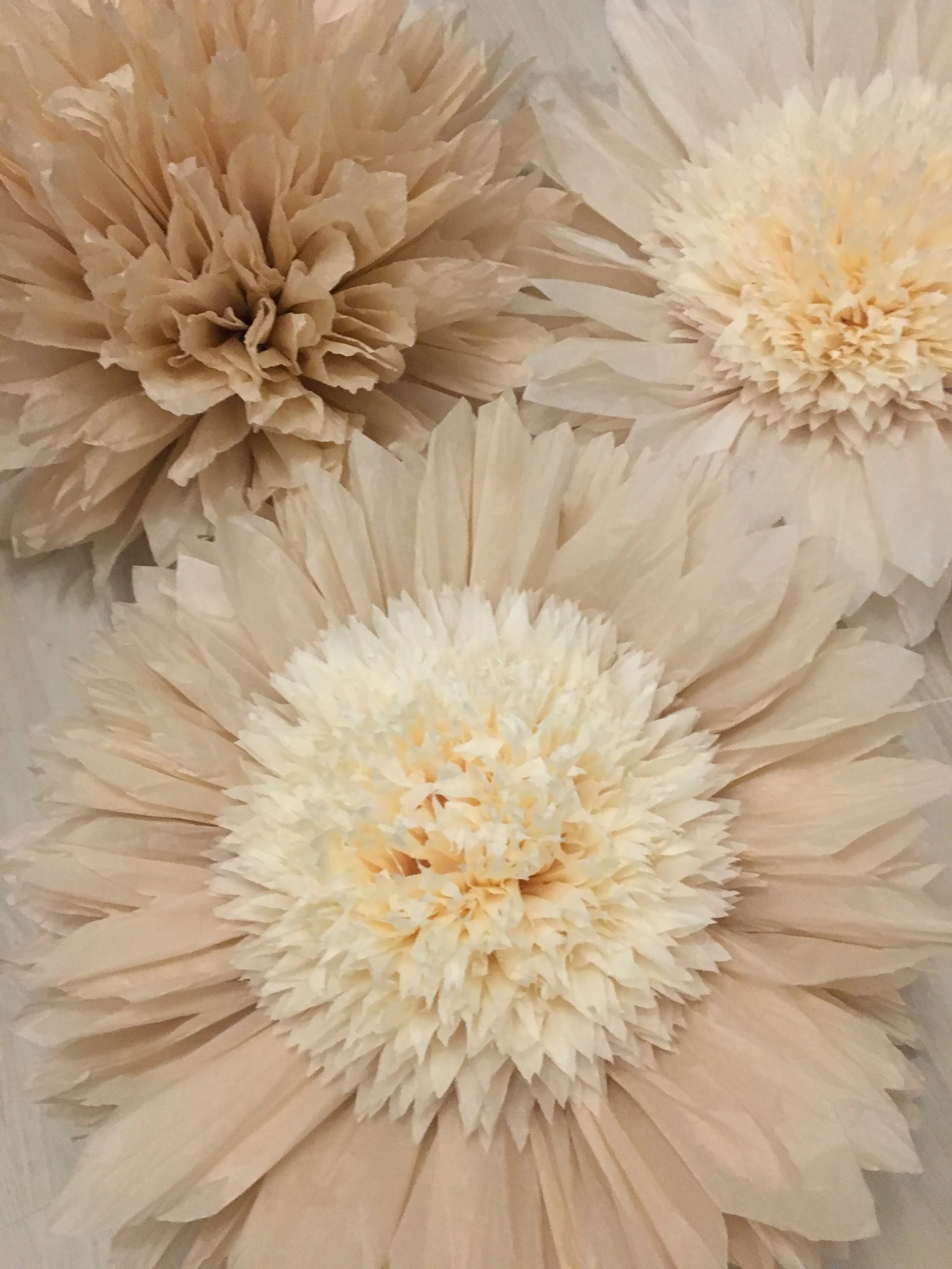 Til workshoppen vil det være muligt at vælge imellem følgende tre farver: beige, lysegul og sart rosa. Du bestemmer selv om du vil lave en mega blomst i alle tre farver eller en ensfarvet.