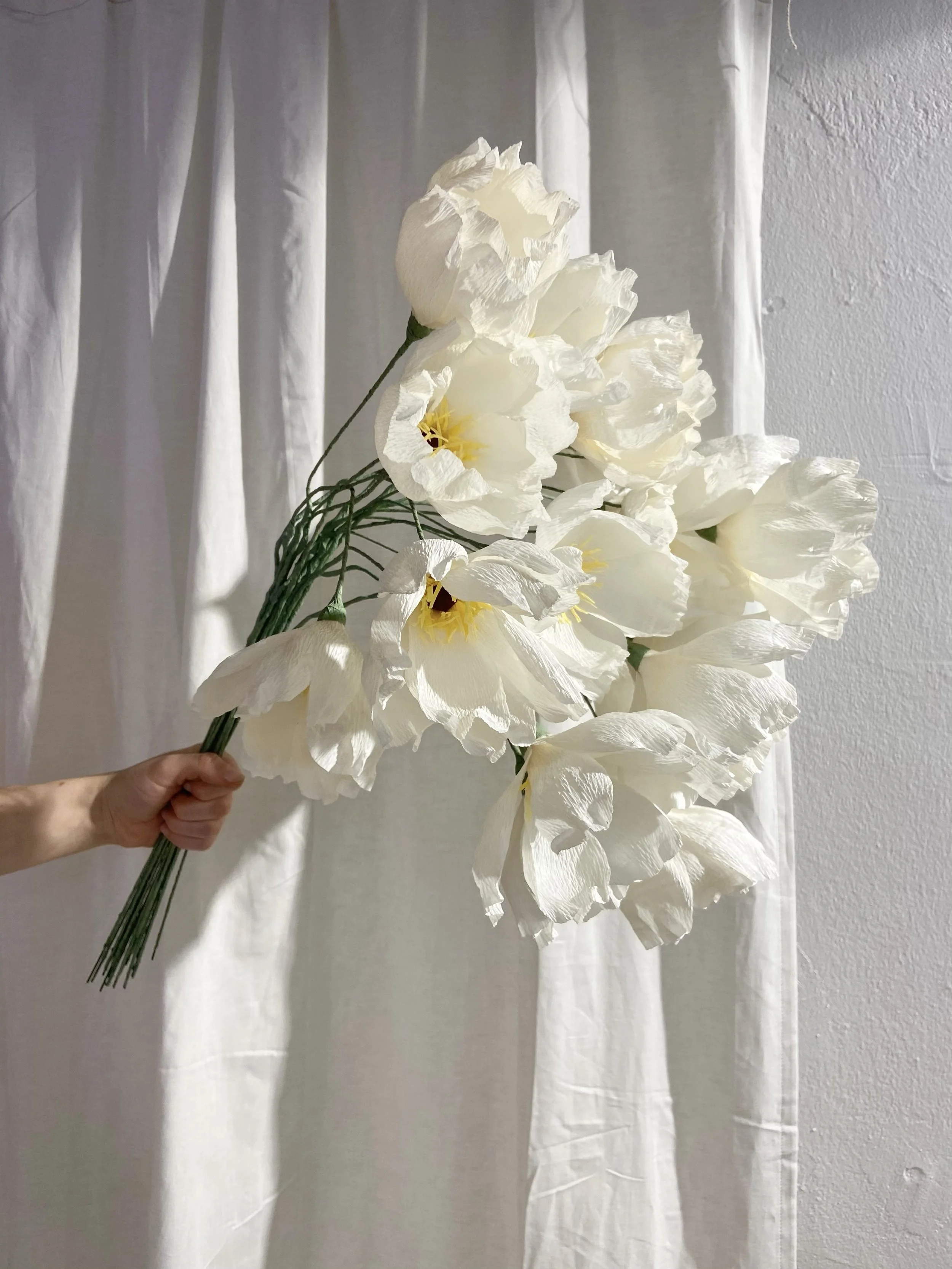NYHED: Lær at lave vores populære papirblomst: Almeja Forårsblomst med ekstra lang blomststilk, så den svejser smukt - single eller i en stor buket.