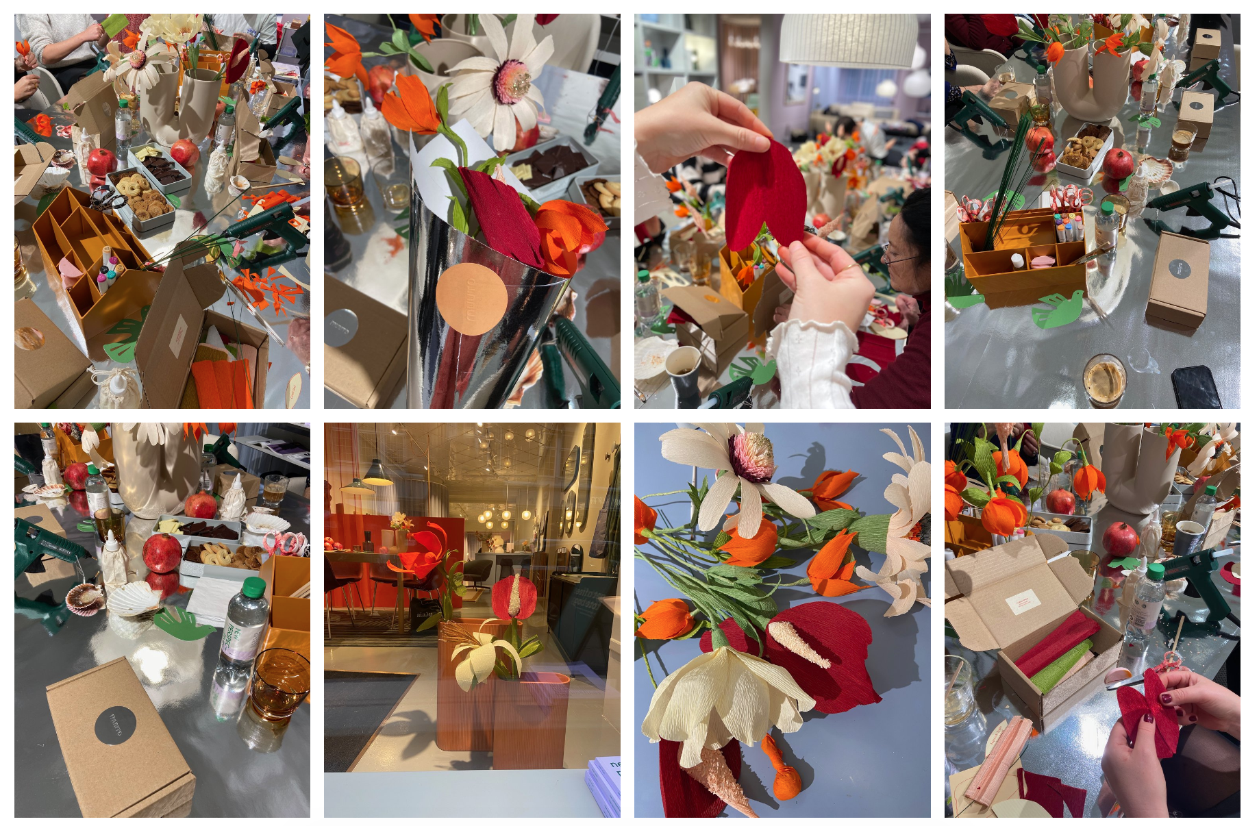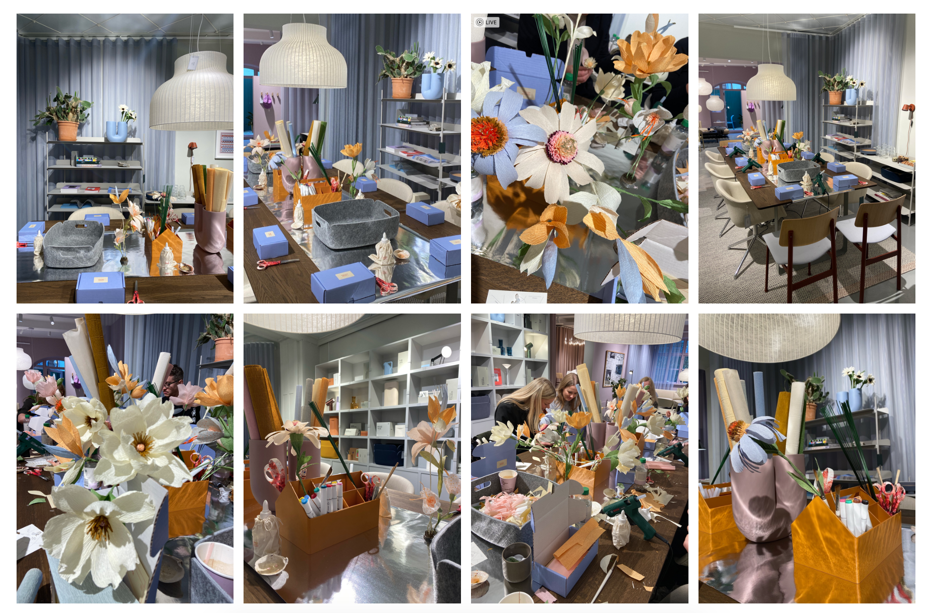 Ud fra en af Muuto’s smukke farvepaletter, havde vi designet tre papirblomster, som vi underviste i, til en workshop i deres flotte og inspirerende butik🫶🏼🍀✂️
