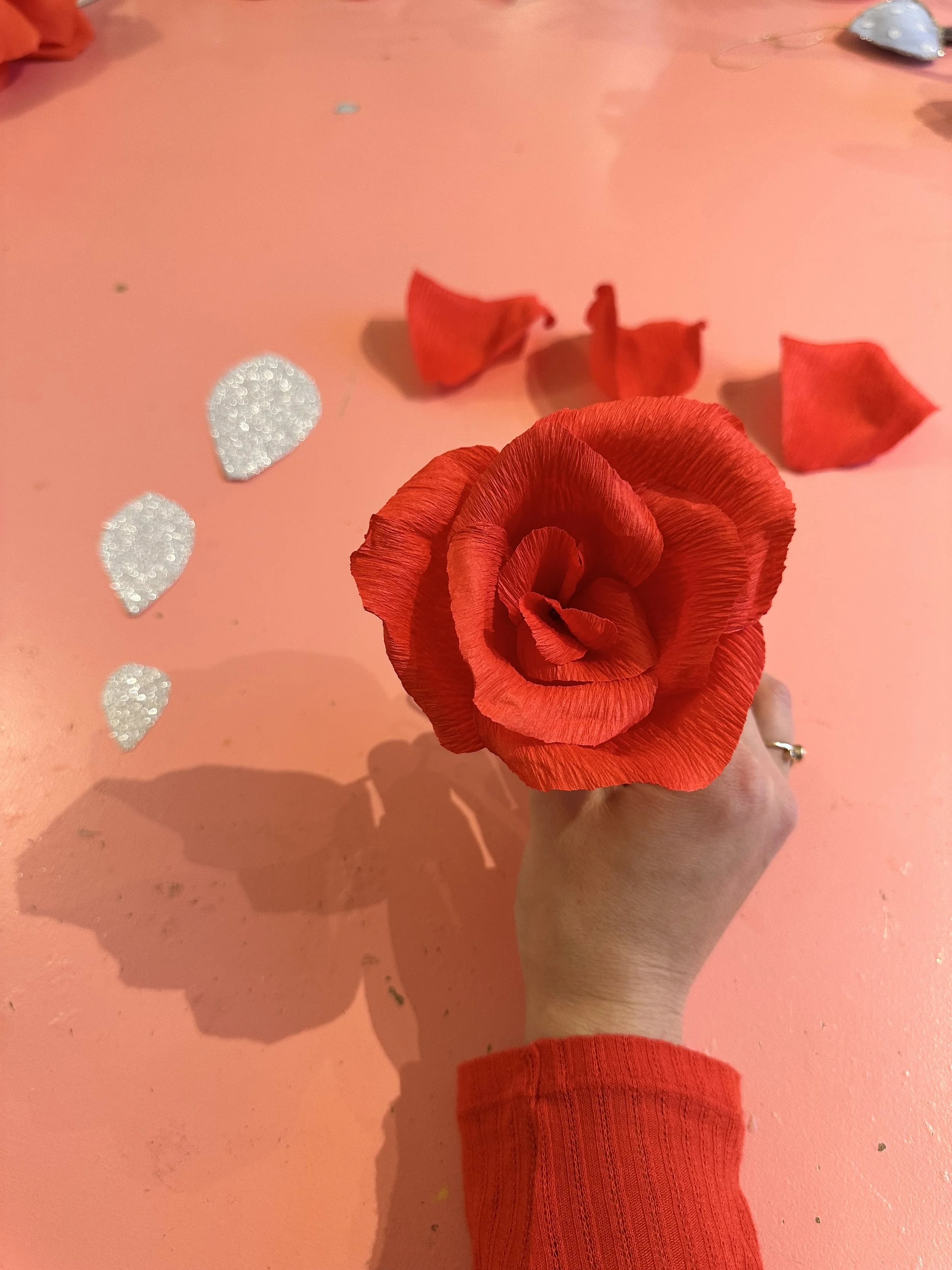🌹 Crepepapir i rødt (gerne 180 g, ekstra strecthy)